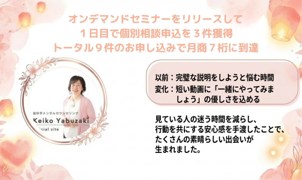 オンデマンドセミナーをリリースして1日目で個別相談申込を9件獲得!