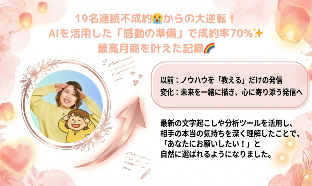 AIを活用した「感動の準備」で成約率70%✨最高月商を叶えた記録🌈