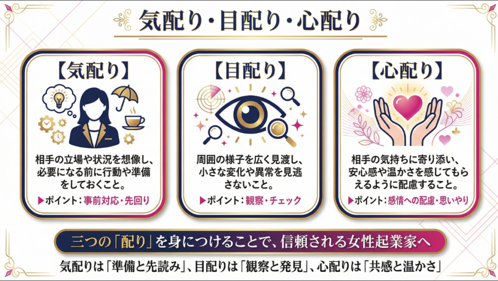 目配り・気配り・心配り。