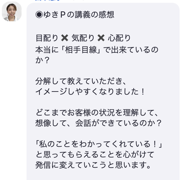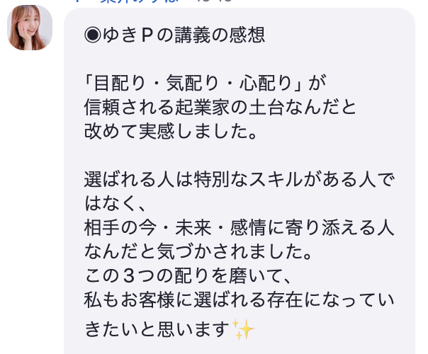 「選ばれる人は特別なスキルがある人ではなく、相手の今・未来・感情に寄り添える人なんだと気付かされました」